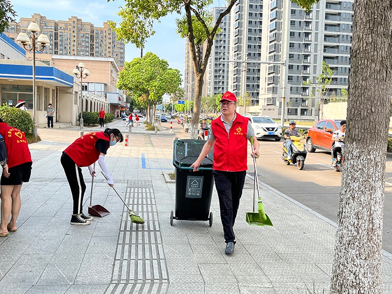 Ô˶¯ÖУ¬µ³Ô±Ö¾Ô¸ÕßÃÇͳһÅå´÷µ³»Õ£¬Éí´©ºìÂí¼×£¬ÊÖ³ÖɨÖãµÈÇå½à¹¤¾ß£¬ÓÐÌõ²»ÎɵØÇå³ýÉ¢ÂäÔÚ·±ß¡¢ÂÌ»¯´øÀïµÄËÜÁÏ´ü¡¢·ÏÖ½µÈ·ÅÆúÎ²¢É¨³ýÁËËÄÖܵĹ«½»Õ¾Ì¨¡£