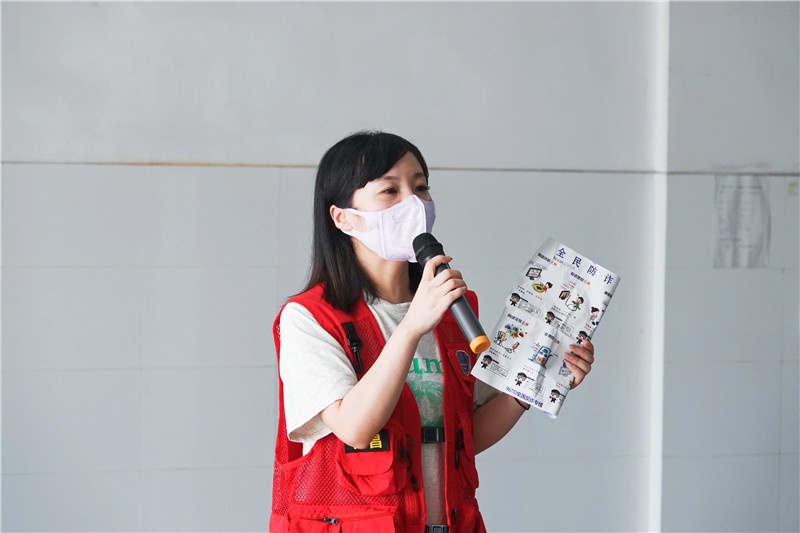 宣讲员通过发放宣传单的形式向各人普及防备电信诈骗知识,重点对网络交友诈骗、网上兼职刷单诈骗、杀猪盘诈骗、代庖信用卡及贷款诈骗等现阶段电信诈骗高发案件类型的特点及手段进行讲解,并就其爆发的危害以及预防步伐展开介绍。随后,宣传队现场教学引导在场员工积极下载应用“国家反诈中心”APP。